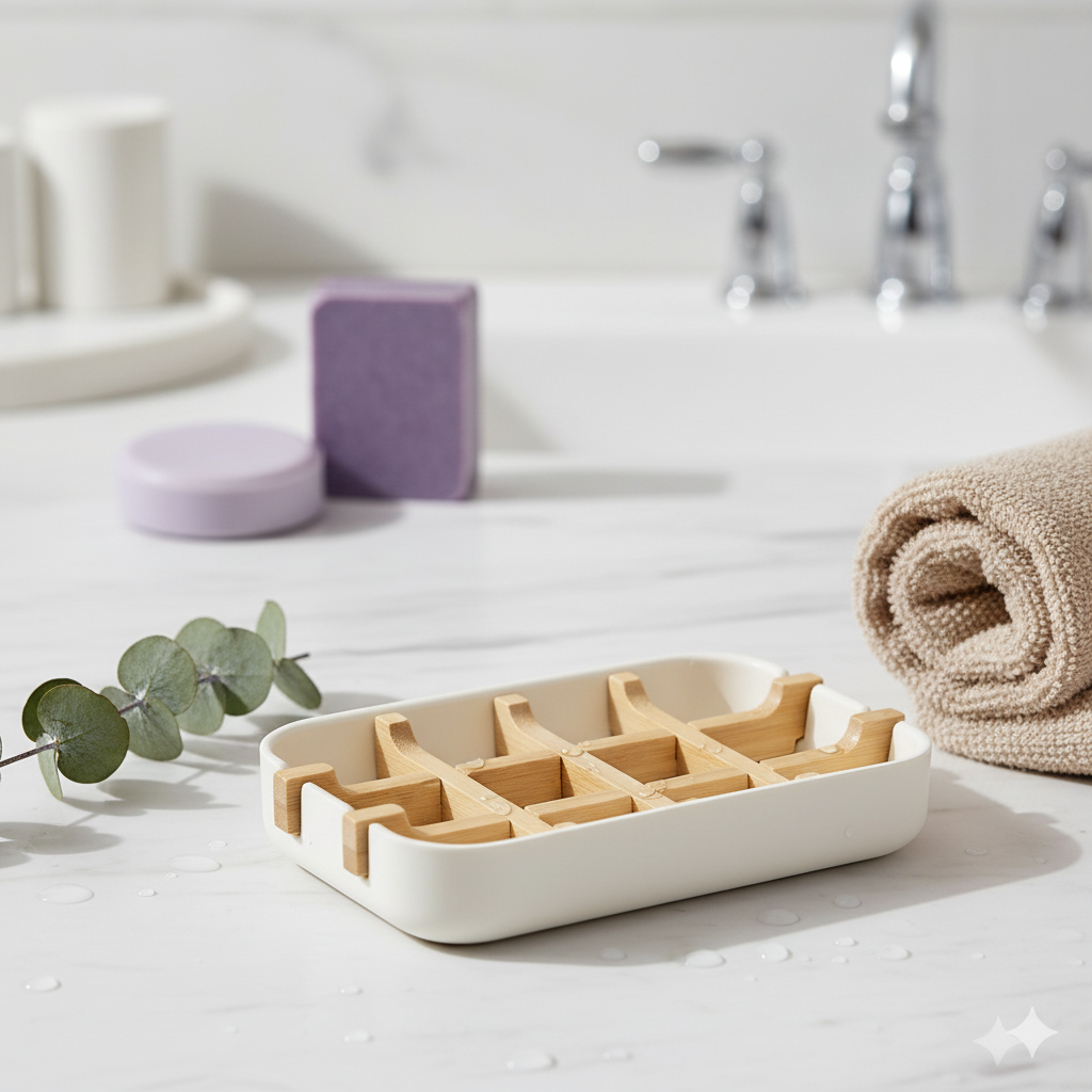 Twoje kostki szamponu i odżywki zasługują na stylowy dom. Tacka Bambusowa Do Szamponu w Kostce Lotta Bloom chroni je przed rozmoknięciem, odprowadzając nadmiar wilgoci – dzięki temu mogą starczyć nawet 5 razy dłużej!